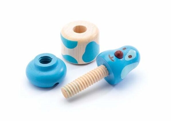 4 חיות שונות הן בצורה והן בצבע, מתרגלות אצל הילדים את מוטוריקת ההברגה,הסיבוב, ותך כדי מחזקות את שרירי האצבעות. מפתח את הדימיון והיציריתיות.עשוי מעץ איכותי כך שישמר לאורך שנים רבות.